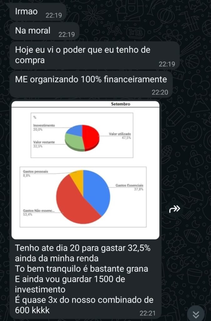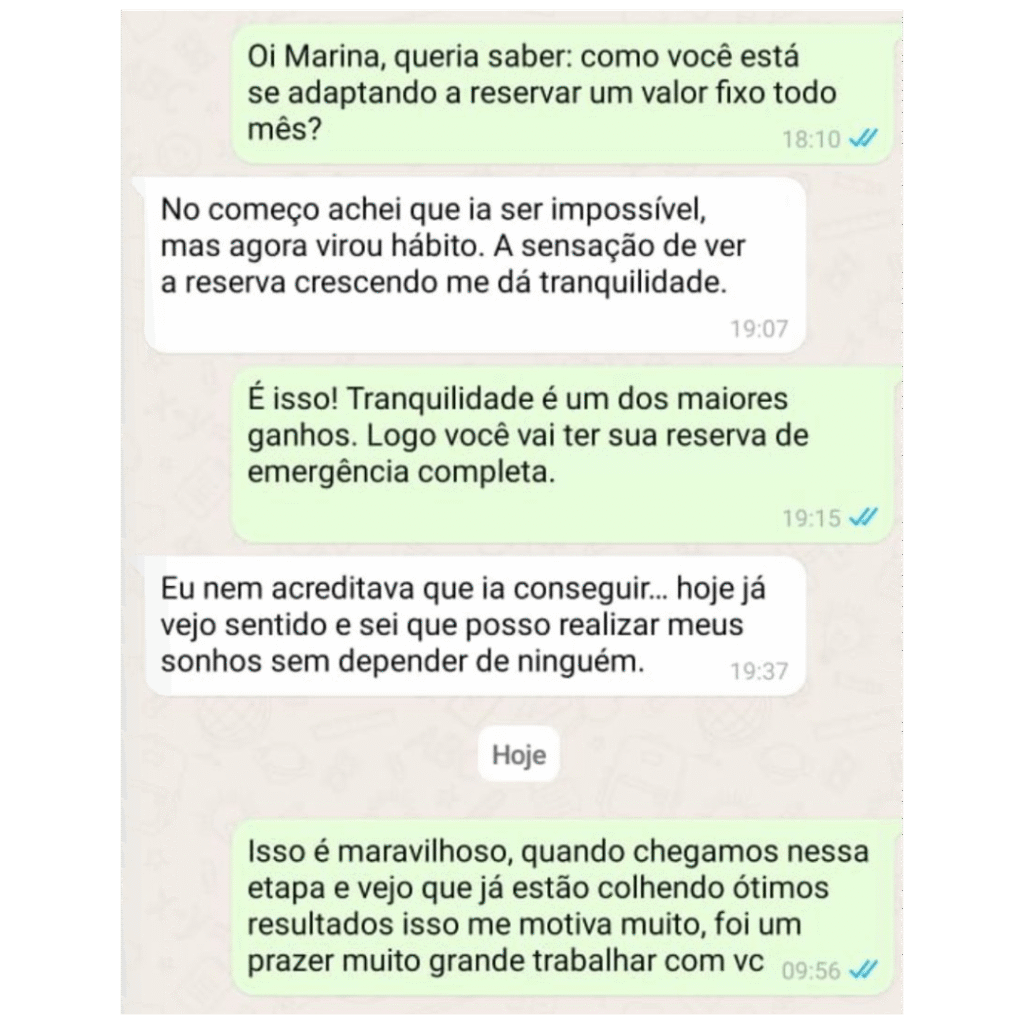 Depois do Desafio 21 Dias de Virada Financeira, passou a separar 10% para economia e 20% para reserva de emergência, começou a acompanhar tudo e hoje fala que está “vendo a cor do dinheiro”.